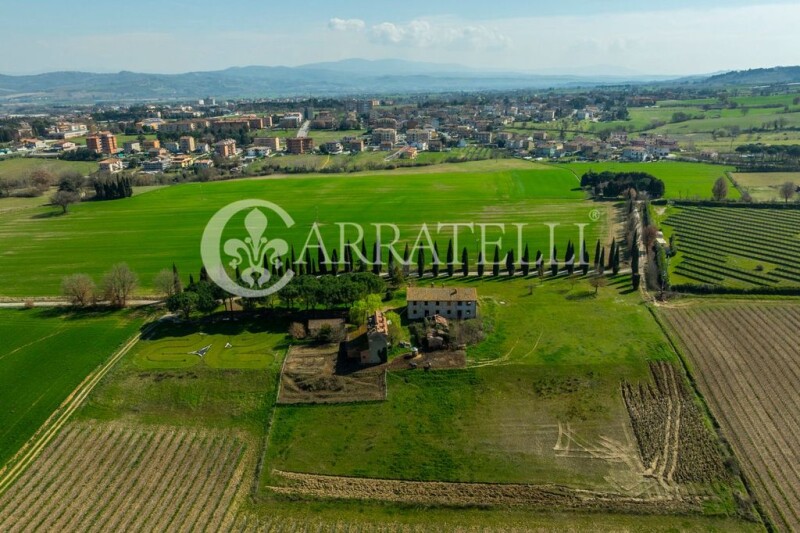 Marsciano, beautiful farmhouse of about 450sqm with land of about 1.5 hectares. Description: Just a stone's throw from the conveniences of the center of Marsciano and yet immersed in the quiet of a sunny plain, this large-square-foot property is currently divided into 4 portions, surrounded by a verdant garden with a tree-lined and well-kept entrance. The main building of about 450sqm has already been renovated in terms of earthquake-proofing and wall insulation, while the interior is still completely unfinished and customizable. The internal subdivision is tentatively composed of 4 large rooms on the ground floor, topped with exposed beams, and 3 rooms plus a large living room on the second floor, while the main staircase also gives access to an attic attic overlooking the living room through a window. The annex of about 50sqm has been renovated and partially furnished and includes a kitchen, a bathroom and a large open space room; the latter, very bright, could serve the function of an annex for any cohabiting servants or visiting relatives or friends. There are two other outbuildings, respectively of about 160sqm and 40sqm potentially intended for tool storage or potential SPA. Outdoor Spaces: The 1.5-hectare garden is prepared for the construction of a swimming pool, the land and the entire property are in a flat and fully lit area, while in the distance you can see the hills of the Umbrian Apennines. A few meters away from the property there is a nature walk that reaches a small pond. It is also available, not included in the price, a plot of about 1 hectare 20 minutes away, including 1050sqm of building land on which a building project has been approved for the construction of about 7 cottages. Condition and Finishes: The main building and an annex have both been renovated, while the interior of the main house is still completely unfinished with ceilings characterized by typical exposed beams. The additional 2 annexes are ruins completely to be restored. There are 2 wells, and the utilities need connection. Potential uses: The structure lends itself to be a prestigious home, with a reference to the ancient style of Umbrian farmhouses thanks to the reuse of nineteenth-century materials. However, it represents an investment opportunity for those who wish to create an accommodation business that can immerse guests in the tradition of the area. Location: Surrounded by greenery and a short walk from the services of the town of Marsciano, this property enjoys an interesting location for those who want to live in nature and privacy. Its location allows you to experience the traditional historical events of the town, and to explore famous well-connected cities such as Perugia, Castiglione del Lago, Orvieto, Cortona, Florence, and Rome.
