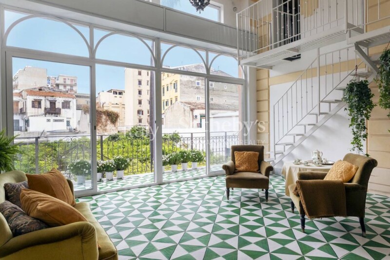 The flat is located in the prestigious Politeama area in Palermo, one of the most desirable areas of the city. Situated on the first floor of a historic building dating back to 1920, the property is in excellent condition and particularly bright, thanks in part to a charming winter garden. The flat is large and spacious, ideal for those who wish to live in a convenient and comfortable environment. It comprises a large entrance hall, three living rooms, a dining room, two bedrooms, three bathrooms, a kitchen, a small cloister, and a light well, as well as several mezzanines, in line with the living concept of the early 20th century. The interior layout of the rooms is well thought out, making it possible to make the most of every space in the house. Of particular note are the frescoed ceilings with floral and faunal motifs, which embellish the rooms. The lift inside the building facilitates access to the property. The wooden windows and fixtures lend a touch of charm and warmth to the environment. Thanks to its strategic location, the potential to customize the interior spaces, and the convenience of the lift, this property presents a unique opportunity. Moreover, the flat is within walking distance of the Politeama Theatre and Lolli Station, from which one can easily take the train to the airport, just 22 km from the property.