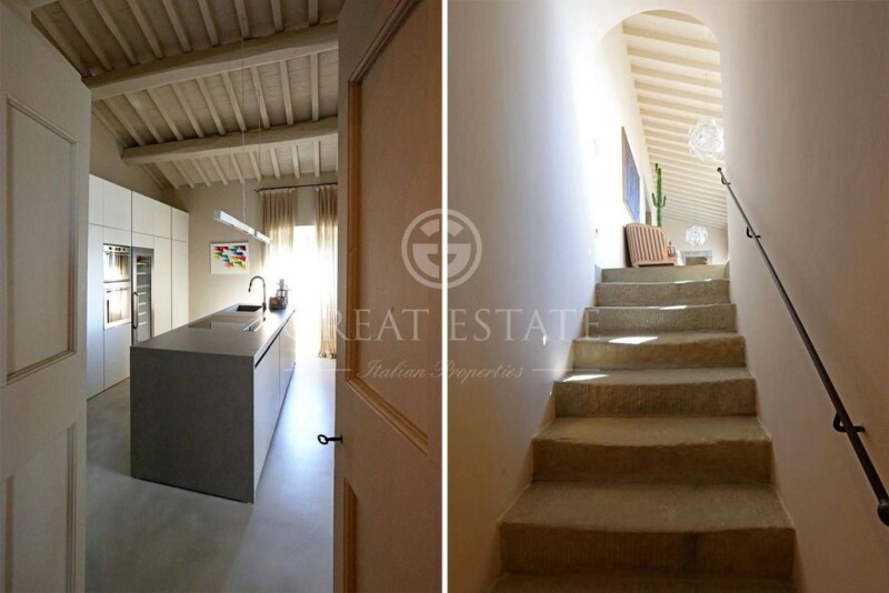 The farmhouse, which dates back to around 1700, was carefully restored in 2010 and has a unique feature: the double turrets placed in a specular fashion at the ends of the building. The house, which has a covered surface area of 533 sqm on two levels, has been restored using the most modern techniques and the result is a luxurious, yet fresh and modern home. The warm wood of the Tuscan tradition is here declined in shades of dove-grey giving the whole unexpected class and elegance, 10kw photovoltaic system for energy saving, underfloor heating that ensures a uniform temperature in every room, home automation in every space, the beauty of the surrounding countryside make it a truly exclusive home.nState of repairnRenovated, luxury finishes, wooden beams, wooden plank floors, wooden window frames, window frames of the loggia with corten iron, the bathrooms and the kitchen have resin floors.nUtilitiesnThanks to two wells the house is self-sufficient for water, there is the methane gas, the supply of electricity comes from its own 10Kw photovoltaic system that also offers the opportunity for income.nUse and Potential UsesnThe property can be used as a main residence to have a starting point, well connected to the main linking roads, for visiting all areas of central Italy.nLocationnImmersed in the greenery of the Tuscan countryside, a few minutes from the town amenities, easily reached.nLand registry detailsnThe property is regularly registered at Catasto Fabbricati for the municipality of Arezzo (AR) nOwnership details and eventual contractual obligationsnThe property is owned by a private individual and the sale is subject to a property registration tax of 9% on the registered value if purchased as a second house or 2% if purchased as the main residence. The land is taxed in 15% from the declared value.n.