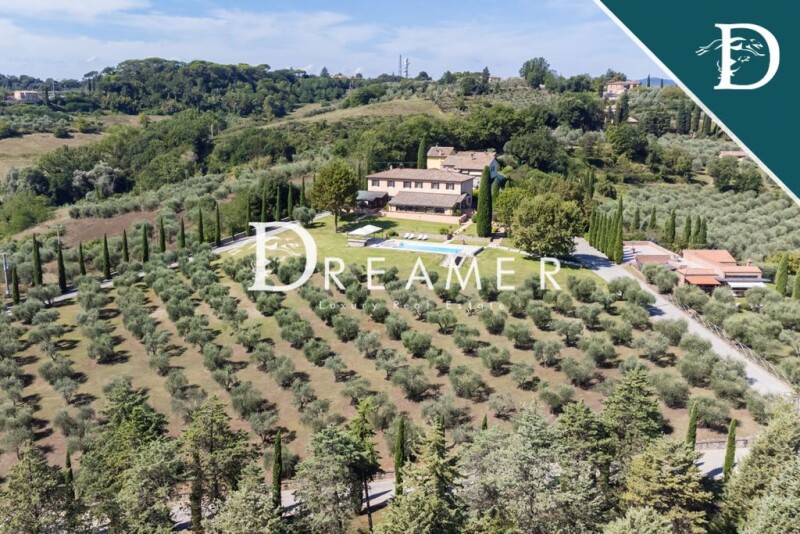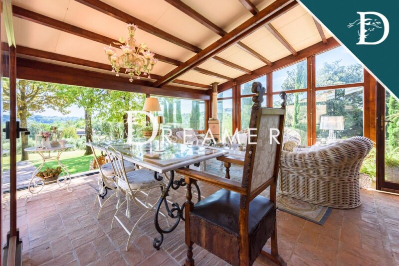 Renovated historic villa with panoramic swimming pool for sale in Siena, just 5 minutes from the historic center and about 1 hour from Florence. The property of approximately 600 sqm, with 6 bedrooms and 7 bathrooms, is framed by the greenery of the countryside and enjoys a unique view of the hills and Siena. Ideal for a large family or hospitality business, the property is divided into two independent units, which can be joined to form a single environment. On the ground floor, the property has a large living area consisting of two impressive double living rooms with high ceilings, two kitchens, two separate entrances with hallways, a study, and a charming winter garden. The halls with large windows make the villa very bright and show breathtaking panoramic views, which can also be appreciated from the winter garden and most of the bedrooms. This floor is completed by 2 service bathrooms and closets. The sleeping area on the upper floor includes 6 bedrooms, 3 of which with en-suite bathrooms, a study, hallways, and 2 further service bathrooms. The villa's park features an English lawn in the immediate vicinity of the house. A terracotta path leads to a pleasant swimming pool area furnished with a solarium area, gazebo, and barbecue corner. The land owned is bordered by cypress trees on the side of the road and embellished with a splendid olive grove. The villa is accessible both from a gate down the hill and from an entrance located at the back of the house, to facilitate access to the service rooms. Furthermore, the property is equipped with air conditioning and working fireplaces. The property includes a large covered garage, ideal for 2 cars, a terraced yard, and 2 cellars (one per property unit). REF: 7561.