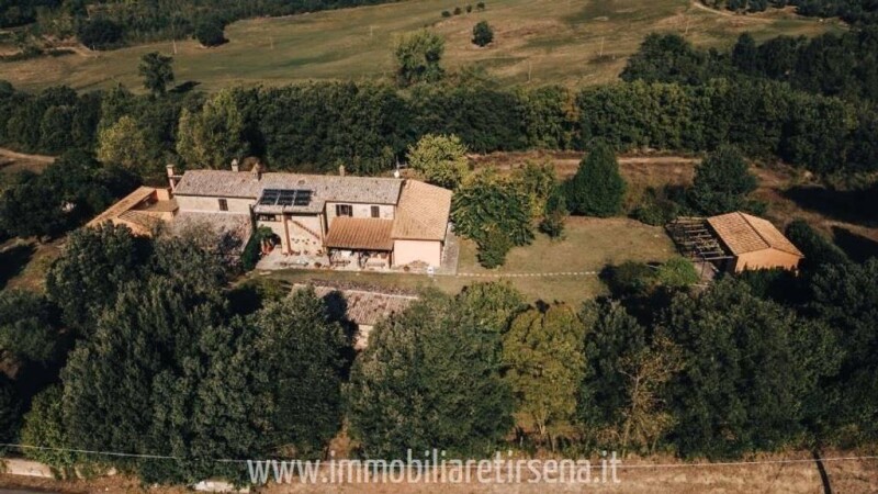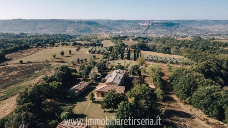 Umbria - Orvieto in a highly panoramic position with a view of the Orvieto cliff, a short distance from Ciconia, about 1 km and 6 km from the historic center of Orvieto, renovated farmhouse consisting of several buildings with land of about 7 hectares. The main building of about 450 sq m cadastral, is spread over two floors in addition to a basement divided into rooms intended for storage and technical rooms. On the ground floor we find a large entrance hall with porch, the eat-in kitchen with fireplace and pantry, dining room, living room with fireplace, large living room with pergola in front, bathroom, study, two bedrooms each with a bathroom. First floor which can also be accessed from the outside via a staircase with a loggia, is divided into an entrance hall with fireplace, three bedrooms, a bathroom and a large terrace with a panoramic view of the Orvieto cliff. Not far from the main building, an annex of about 70 sq m consisting of two rooms, a bathroom, a woodshed, a wood oven; outbuilding of about 100 sq m. 35 newly built with residential use as its destination, is divided into a living area with kitchenette, a bedroom and a bathroom in the basement, ready for a swimming pool. Land of approximately 7 hectares of which approximately 1 Ha of courtyard area, 1.5 Ha of olive grove (about two hundred trees), 2 Ha of arable land and 2.45 Ha of woodland. The property is in excellent condition, renovated using typical local materials. All comforts. The heating system with thermal power plant can be powered by LPG, but also by wood, mains water, artesian well, cistern for collecting rainwater and 4.8 kw photovoltaic system. The property enjoys privacy but is not too isolated. The proximity to Orvieto and the A1 motorway exit make this property suitable both as a private residence and as a tourist accommodation facility.--d45f35279fbb33172e3edc79ebba6251!.