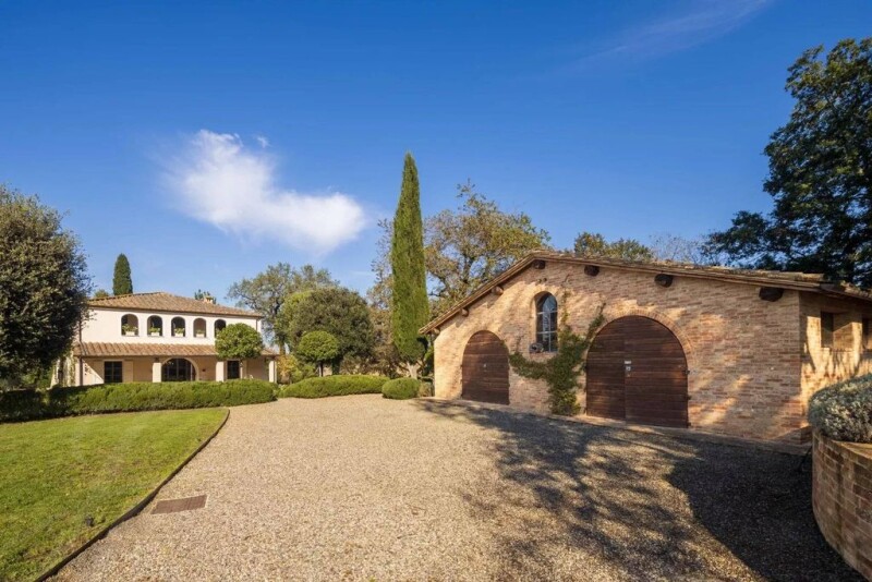 Nestled in the heart of the beautiful Tuscan countryside, this 1800s villa is a masterpiece of charm and sophistication, carefully restored by the current owners to combine tradition and modern comfort. Surrounded by a delightful, small and easily manageable Italian garden, the property offers spectacular views of the rolling hills, enhanced by a well-kept vegetable garden, 50 olive trees and a private swimming pool with outdoor shower, perfect for enjoying the hot summer days. The villa, divided into two units, is distinguished by spacious, bright and tastefully designed spaces. The main unit welcomes guests with a uniquely charming living area, enhanced by a fireplace for cozy evenings, a study and a dining room overlooking the garden. The adjacent kitchen, modern and functional, blends harmoniously into the interior characterized by ceilings with small restored and bleached vaults. Upstairs, parquet flooring adds warmth to the rooms, while comfort is ensured by an underfloor heating system with geothermal technology, air conditioning and numerous windows that flood the spaces with natural light. The master bedroom is a true oasis of serenity, with direct access to a panoramic loggia, private bathroom with tub and shower, and a spacious walk-in closet. On the same floor are four more bedrooms, one of which is currently used as a gym, and two additional bathrooms. The second unit, which can easily be reintegrated into the main villa, has a kitchen and living area on the ground floor, while on the upper floor are two cozy bedrooms and a bathroom. Completing the property is an 84-square-meter annex nestled in the garden, ideal as an art studio, yoga room or creative space. The villa enjoys a strategic location: just 14 km from the renowned Castiglion del Bosco Golf Resort and 3 km from the main services, it is perfectly connected to Siena (25 minutes by car) and other renowned locations in Tuscany. This unique residence lends itself both as a main residence, thanks to its functionality and convenience, and as an exclusive vacation home. Also perfect for investment, it is ideal for accommodating tourists and golf enthusiasts looking for an unforgettable experience.